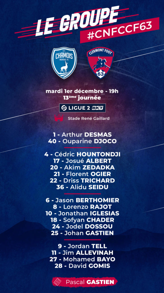 Découvrez le groupe convoqué par Pascal Gastien pour le déplacement à Niort, demain à 19h.