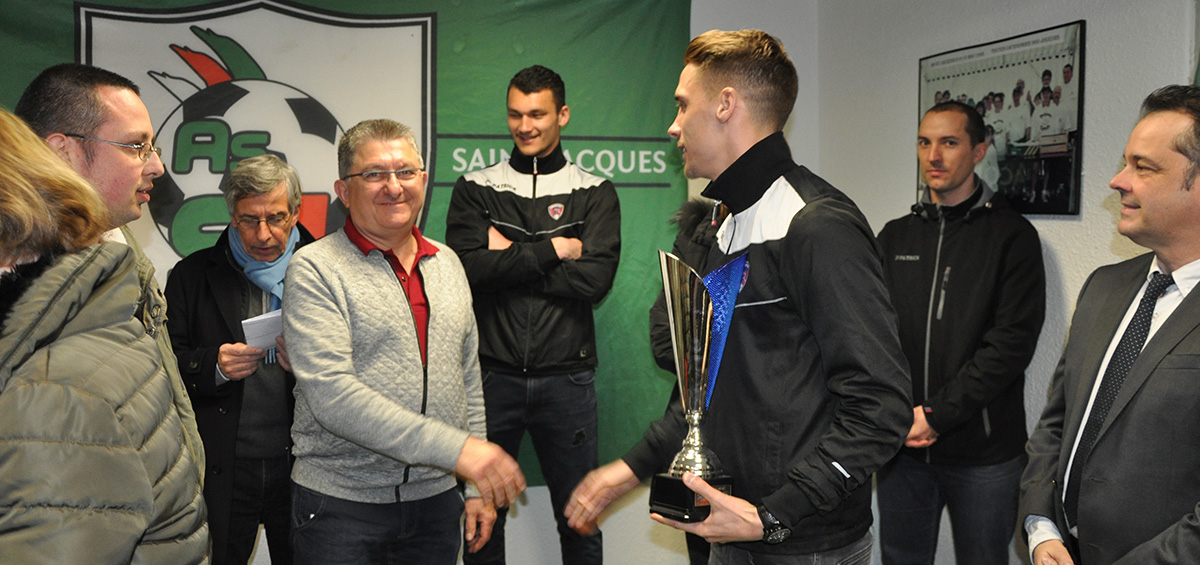 Le meilleur buteur clermontois, auteur d'une passe décisive à Ajaccio et d'un doublé à Strasbourg, a reçu son trophée des mains de Sylvie Lopez, Directrice de la caisse Crédit Mutuel Massif Central des Neuf Soleils, en présence de Jean-Pierre Nicolas, Responsable Puy-de-Dôme et Allier du CMMC, Georges Guillaumin, Président de l'AS Saint-Jacques, Sylvie Maisonnet, Vice-Présidente du Conseil départemental, Christophe Bertucat, Conseiller Municipal, Claude Michy, Patrick Sicard et Corinne Diacre.