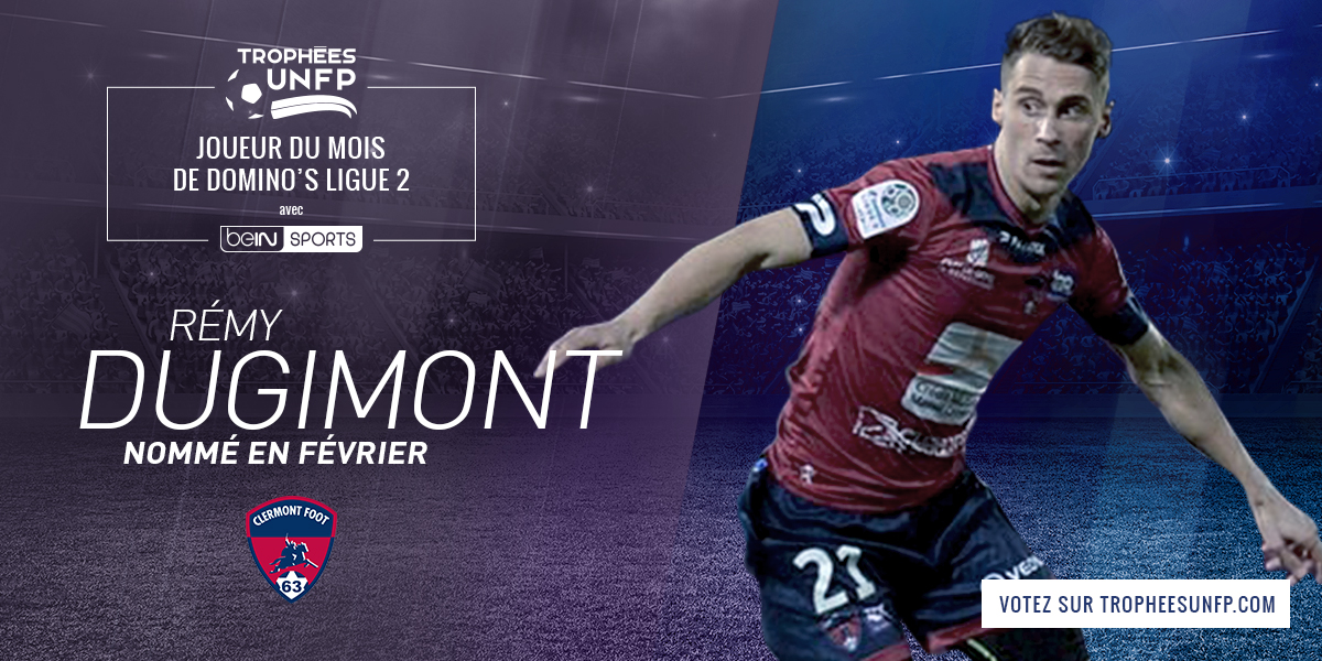 Récompensé au sein du Clermont Foot 63, Rémy Dugimont est également en lice à l'échelle nationale pour le Trophée UNFP du joueur du mois de la Domino's Ligue 2. Il est nominé aux côtés de l'auxerrois Gaëtan Courtet et de l'orléannais Mickaël Barreto.