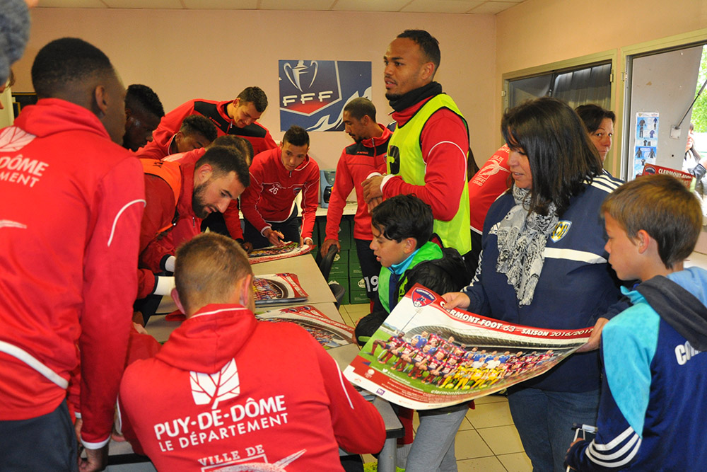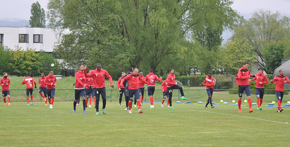 Dans le cadre du partenariat du Clermont Foot 63 avec le Conseil départemental du Puy-de-Dôme, le groupe professionnel s'est rendu à Riom ce mercredi 26 avril pour s'entrainer sur les installations du Parc sportif du Cerey.