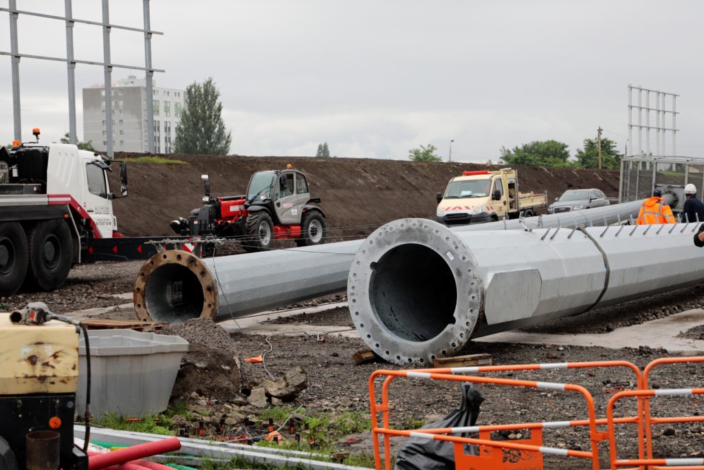 Pendant ce temps, des grues démontaient les anciens éclairages pour les remplacer par les nouveaux, à LED, dont la puissance est passée de 1200 lumens à 2000 aujourd’hui, tout en étant moins énergivores. Les nouveaux mâts, plus épais et légèrement plus hauts, permettent de supporter la quarantaine de spots installés au sommet.