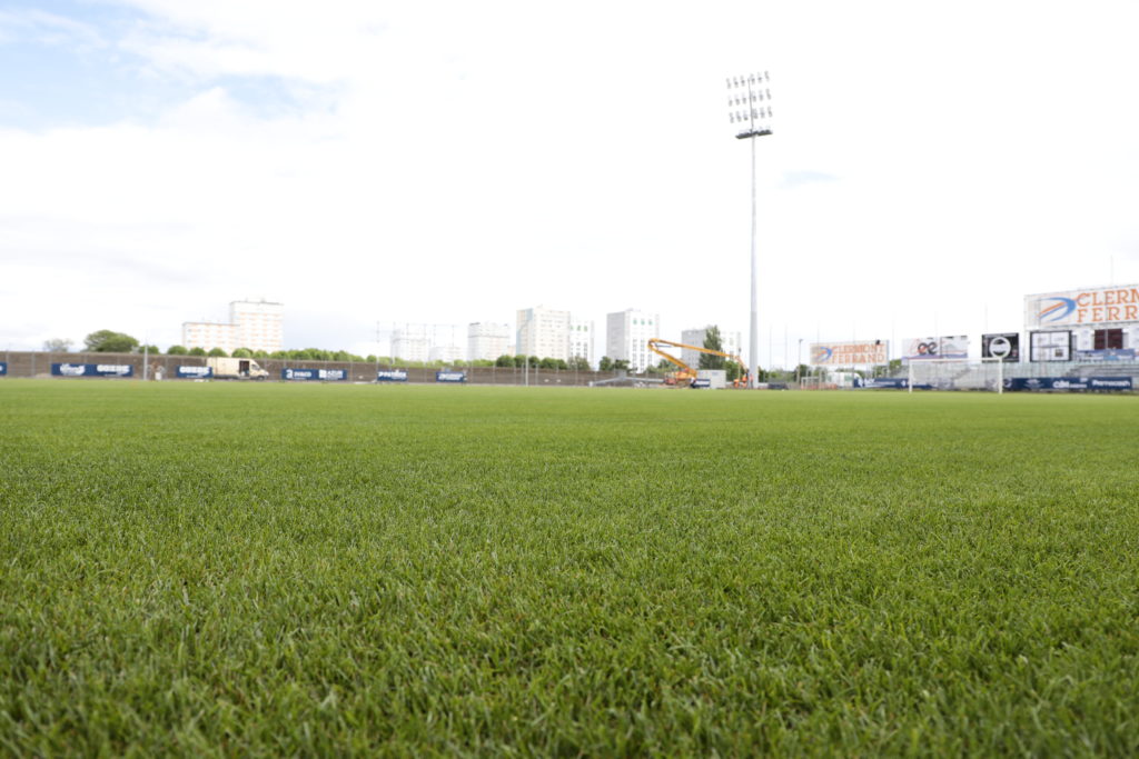 Arrivée la semaine dernière en camions réfrigérés, la pelouse a depuis été déroulée puis entièrement posée. Elle est depuis brossée et tondue quotidiennement par les équipes de Clermont Métropole et Treyves Paysages afin qu’elle soit au point pour accueillir le premier match de Ligue 1 Uber Eats à Clermont ! Les lignes blanches ont également été tracées hier dans la journée.