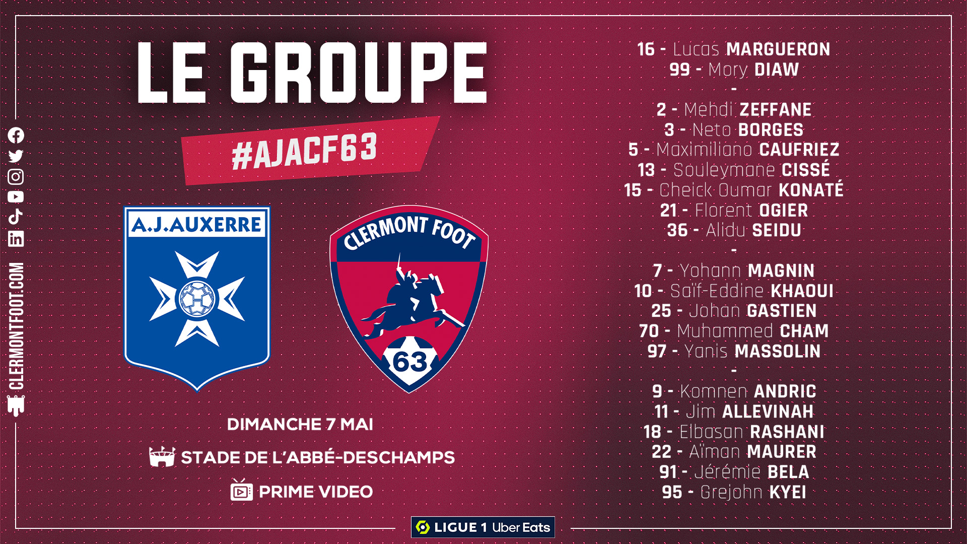 Côté AJA, Elisha Owusu sera également absent. Gideon Mensah, M’Baye Niang et Youssouf M’Changama sont quant à eux annoncés incertains.