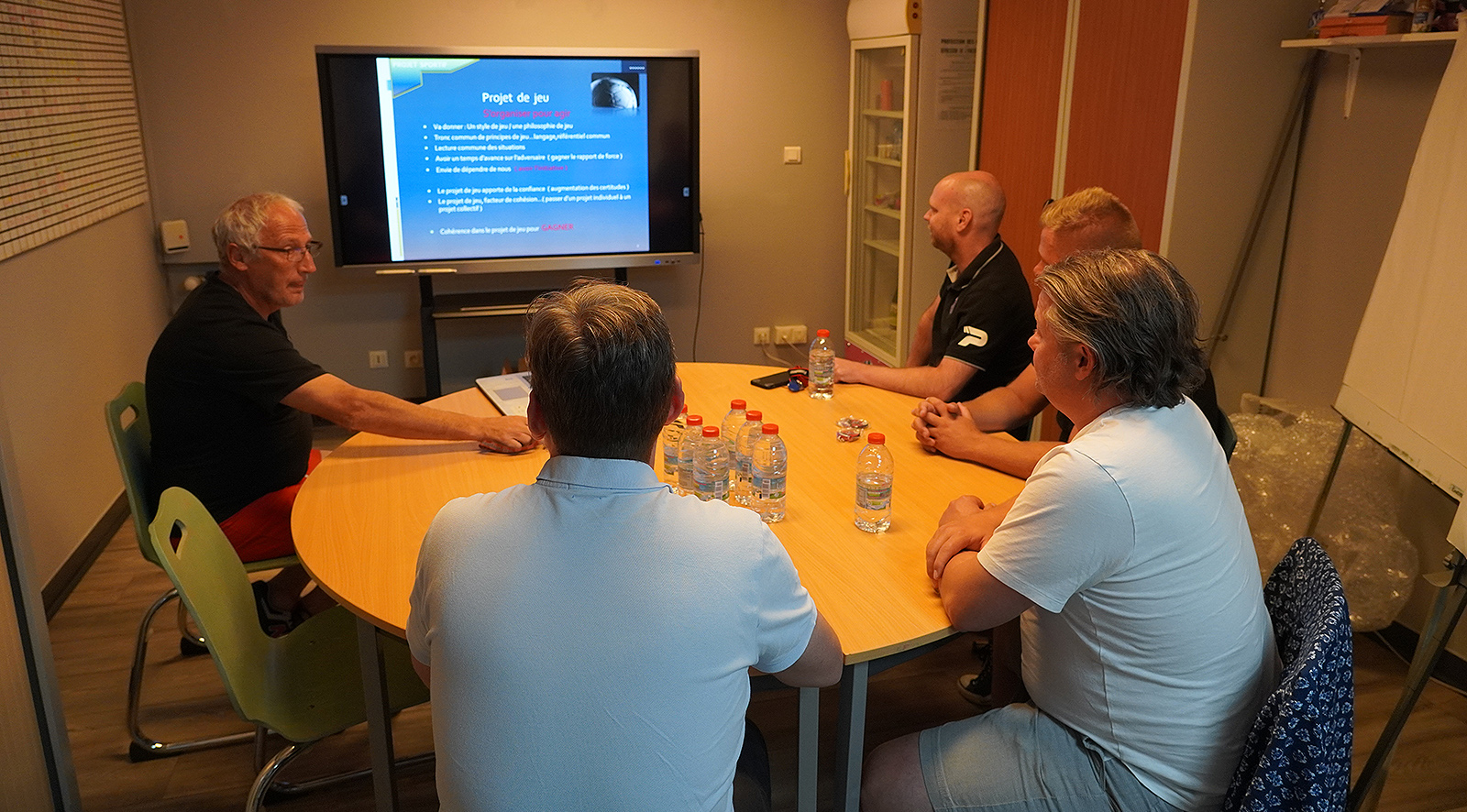 Réunion technique autour de Pascal Gastien en présence d’Ingo Winter (au fond à droite), chef du football à Core Sports Capital